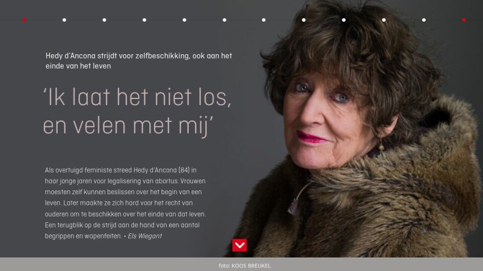 Als overtuigd feministe streed Hedy d’Ancona (84) in haar jonge jaren voor legalisering van abortus. Vrouwen moesten zelf kunnen beslissen over het begin van een leven. Later maakte ze zich hard voor het recht van ouderen om te beschikken over het einde van dat leven. Een terugblik op de strijd aan de hand van een aantal begrippen en wapenfeiten. • Els Wiegant