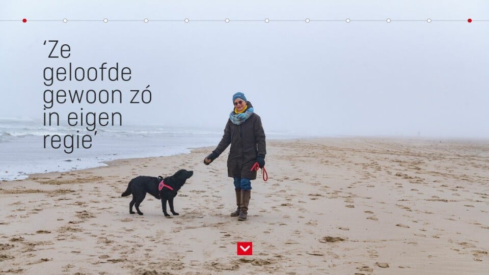 ‘Die woensdag werd de euthanasiedatum gezet op de komende maandag. Daar schrok mijn moeder van, ze was zo bang dat er in die vier dagen alsnog van alles zou gebeuren, dat ze zou vallen, ze was zo wankel en fragiel. Het was een gek telefoontje dat ik toen met haar huisarts pleegde: kon mijn moeder niet eerder geholpen worden? Maar hij begreep het meteen, deelde onze zorg zelfs en zegde toe over twee dagen al te komen. Na een kop koffie met een advocaatje erbij, is ze die vrijdag om elf uur in haar eigen bed en in alle rust overleden. Haar laatste woorden waren: “Dank jullie wel, dank je, dank je”. Ze was zo opgelucht. Een lijdensweg was haar bespaard gebleven, tot het einde had ze de regie, precies zoals ik mijn moeder kende. Soms denk ik: dit is precies het einde waarnaar ze sinds de dood van mijn zus heeft toegewerkt.’