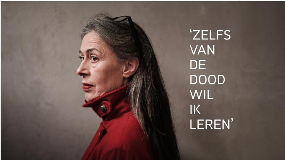 ‘Waar we het net over hadden, over het pallet aan keuzemogelijkheden om te sterven, wel of niet in eigen regie: ik heb nergens een oordeel over en wil als betrokkene elke wens faciliteren. Dan ben ik er 100 procent voor diegene. Mijn eerste, vroege ervaring met levenseindebegeleiding was eind jaren tachtig, met mijn geliefde onderbuurman Jan. Hij kreeg HIV toen nog niemand wist wat dat was. Hij vroeg of ik zijn buddy wilde zijn. Dagelijks trok ik met hem op, samen zochten we alles uit, ook zijn pad naar euthanasie. Doodgriezelig vonden we dat natuurlijk, maar we bespraken en analyseerden alles, ook met de andere dierbaren om hem heen; dat hielp ons om de angst te kalmeren. Er was nog geen euthanasiewet en Jan vroeg mij als zijn officiële getuige, wat betekende dat ik, naast de huisarts, ook de papieren moest tekenen. Eén belangrijk ding heb ik toen wel besloten, ik zei: “Ja lieve Jan, dat ga ik doen, maar ik maak er geen geheim van, dat kan ik niet. Ik wil kunnen blijven spreken over wat me raakt, zelfs als ik daarvoor juridisch gestraft kan worden”. We zijn volop in dat pad gedoken, namen elke stap in overeenstemming met de artsen en instanties. Het heeft veel indruk op me gemaakt, ik vond het een rijkdom om bij zijn sterfproces te mogen zijn, het is zoiets waardevols als iemand je in zo’n fase dichtbij laat. Niks hebben we onbesproken gelaten, hoe spannend we dat ook vonden. Zo heb ik geleerd hoe het bevrijdt en verbindt om alles wat moeilijk is juist wel te benoemen in plaats van te blokkeren of te parkeren.’