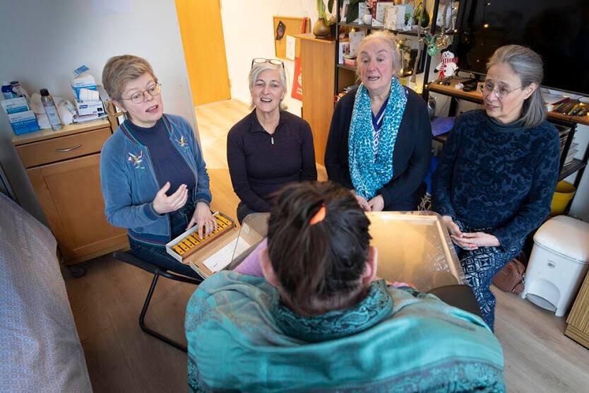 Bedside Singers, de naam zegt het al, komen op verzoek langs bij mensen die letterlijk op hun sterfbed liggen - en ook in de periode daarvoor. Het gaat er sereen aan toe: de koorleden hebben altijd hun eigen krukjes bij zich, zodat er niet gestommeld hoeft te worden met allerhande meubilair. En applaus klinkt er niet, na afloop, want daar is het de Bedside Singers niet om te doen. ‘Wij zingen voor de ziel op reis’, luidt het credo.