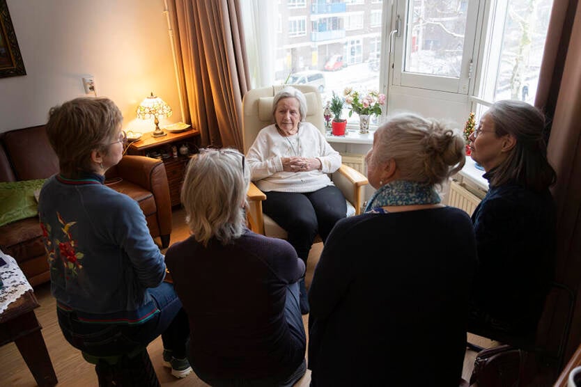Het initiatief kwam van therapeut en zangdocente Petrie Akkerman, die ooit onder de indruk raakte van het Amerikaanse Threshold Choir, vrij vertaald: een koor dat zingt voor mensen die op de drempel van het leven verkeren. Akkerman zong geregeld voor haar ouders die leden aan de gevolgen van dementie. Zingen was op een gegeven moment zelfs nog de enige manier om contact met ze te krijgen. Van het één kwam het ander en voor ze het wist was de Nederlandse variant van Treshold Choir opgericht. Spontaan sluiten nieuwe koren zich aan. ‘Doorgaans zijn onze zangbezoeken vrij informeel, vaak zelfs gezellig. Het kan natuurlijk wel zwaar zijn om te zingen voor mensen die pijn lijden’, zegt ze. ‘Het komt ook geregeld voor dat we op bezoek komen bij iemand die euthanasie krijgt. Laatst waren we bij een man die ons op de laatste avond voor zijn euthanasie bij het afscheid van zijn familie en vrienden had uitgenodigd. Daar hebben we wel een uur zitten zingen, een ervaring die we nooit zullen vergeten.’