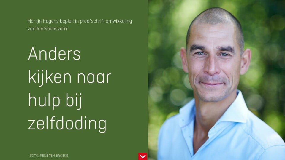 Ontwikkel niet-strafbare hulp bij zelfdoding buiten de euthanasiewet die veilig, zorgvuldig, transparant en toetsbaar is. Dat biedt mogelijk een alternatief voor mensen die zelf willen beschikken over het moment en de manier waarop hun leven eindigt. Dit stelt Martijn Hagens naar aanleiding van zijn proefschrift. Hij heeft het over de hulp bij zelfdoding aangeboden door een organisatie als Stichting de Einder, de NVVE en Stichting Levenseindecounseling (SLC), namelijk: informatieverstrekking en begeleiding. • Martien Versteegh