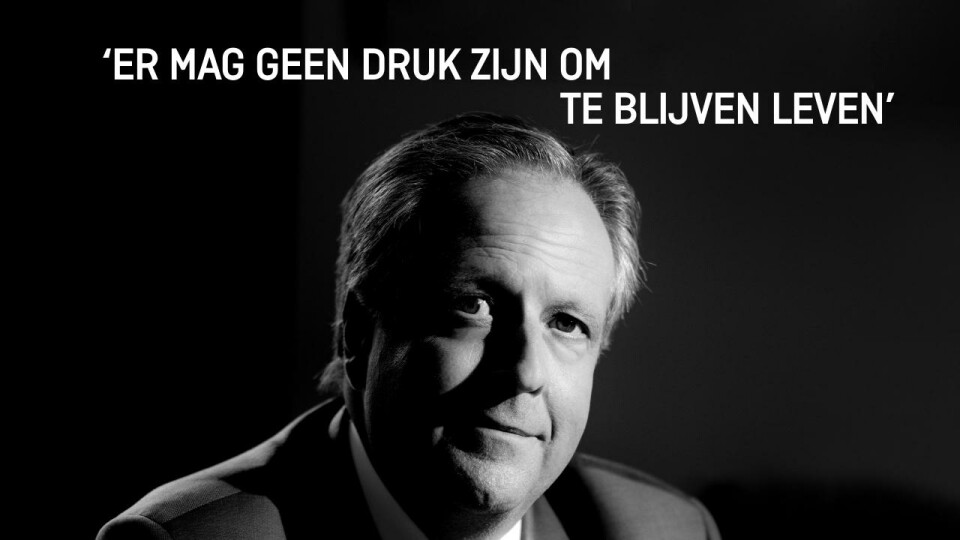 Hij sluit zijn ogen niet voor de ingewikkeldheden en risico’s, zoals het gevaar dat er druk ontstaat vanwege de hoge zorgkosten voor ouderen. ‘Dat gevaar bestaat. Benoem dat maar, praat ook daarover. Iedereen mag er het zijne van vinden. Dat geldt ook voor mensen die vanwege hun geloof tegen euthanasie bij voltooid leven zijn. Mijn argument is dan: “Ik dwing jullie nergens toe, maar geef mij ook de ruimte om mijn eigen keuzes te maken. Zijn mijn overtuigingen minder waard dan jullie geloof?” Dan krijg je een prettige discussie.’