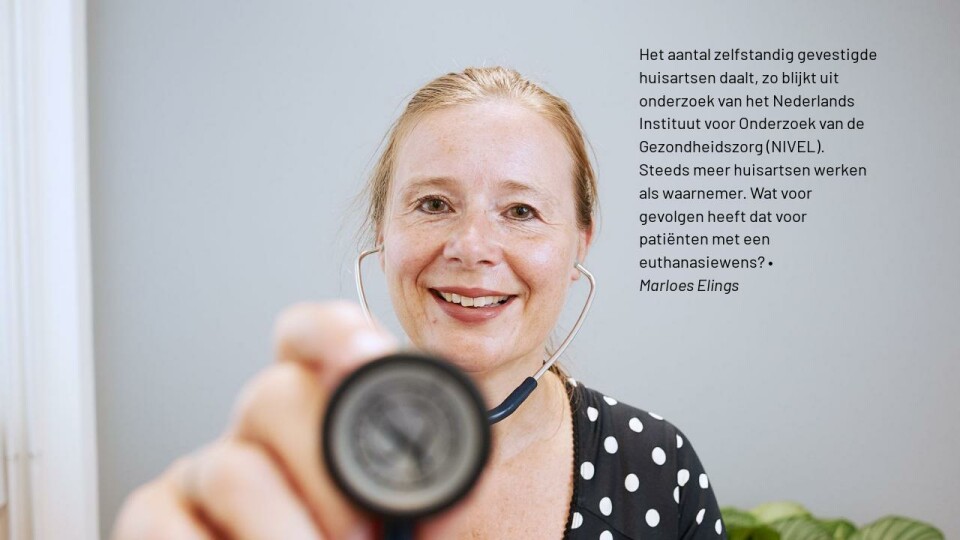 Het aantal zelfstandig gevestigde huisartsen daalt, zo blijkt uit onderzoek van het Nederlands Instituut voor Onderzoek van de Gezondheidszorg (NIVEL). Steeds meer huisartsen werken als waarnemer. Wat voor gevolgen heeft dat voor patiënten met een euthanasiewens? •